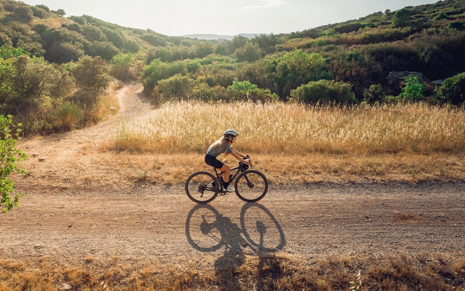 Cyclist riding on trail